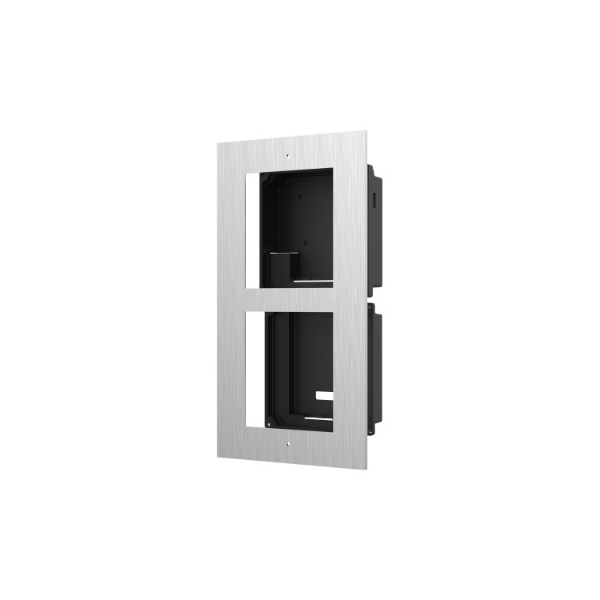 The HIKDS-KD-ACF2-P is a high-quality modular intercom accessory housing designed for clean recessed installation of Hikvision 2nd generation DS-KD two-module door stations. Measuring 236 x 124 x 4 mm for the cover and 237 x 134 x 56 mm for the gang box, it features an aviation aluminum cover and durable plastic back box to ensure a rigid fit, neat finish, and long-term reliability.