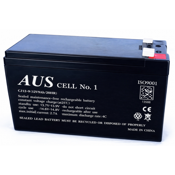 The AUSCJ12-9 is a high-quality valve regulated lead acid AGM battery designed for dependable standby and cyclic power. Measuring 151 x 65 x 100 mm, it features a durable ABS enclosure with optional UL94-V2 flame resistance and heavy-duty grids to ensure stable output, long float life, and safe maintenance-free operation.