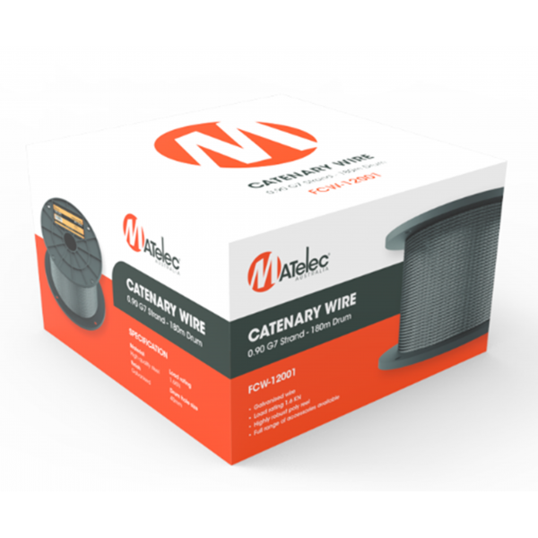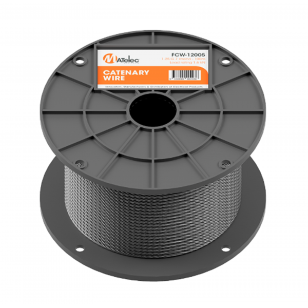 The FCW-12005 is a high-quality 7 strand catenary wire designed for reliable overhead support and suspension in covered installations. Measuring 4.0mm OD and supplied as a 100m drum, it features high quality steel with an electro-galvanised finish to ensure long-lasting durability and corrosion resistance.