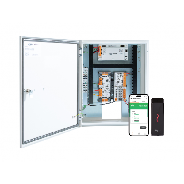The GALC500304 is a high-quality intruder alarm and access control base kit designed for Gallagher SMB installations. Featuring a 3.5A power supply and pre-terminated wiring loom, it includes the core controller, I/O, and reader hardware to ensure reliable performance and quick smartphone-app commissioning.