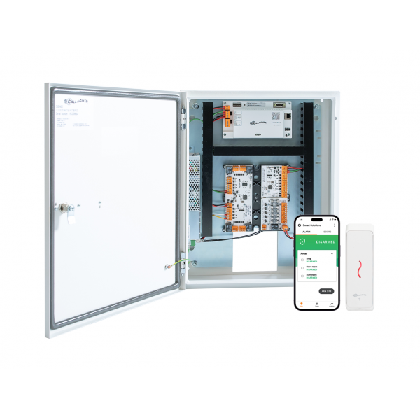 The GALC500303 is a high-quality single door access control kit designed for small to medium business security. Measuring 8 supervised inputs and 4 relay outputs, it features a powder coated steel mounting solution with an ABS T15 white reader and HBUS architecture to ensure fast installation, encrypted device communications, and dependable door control.