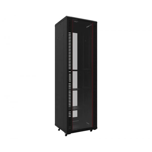Ideal for data rooms telecom closets and surveillance installations, it complies with standard 19 inch EIA-310 rack mounting and offers heavy duty castors levelling feet removable side panels top and bottom cable entries earth bonding and repositionable front and rear rails, making it suitable for commercial enterprise and light industrial environments.