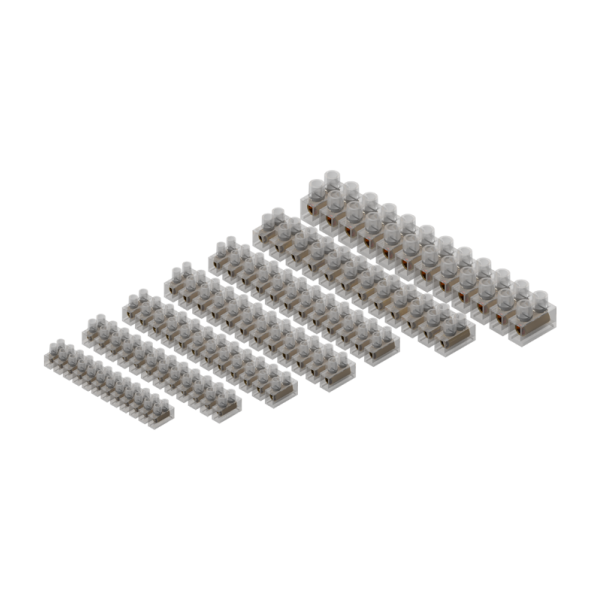 The STC-M10/10A is a commercial-grade 10mm2 10A strip connector designed for fast and secure cable joining in switchboards, control panels, lighting circuits, and general electrical installations. Measuring 129mm long with a 3.8mm cable entry, it features solid brass connector barrels in a flexible and pliable natural insulation body with flat head screws to deliver reliable conductivity and a firm wire clamp.