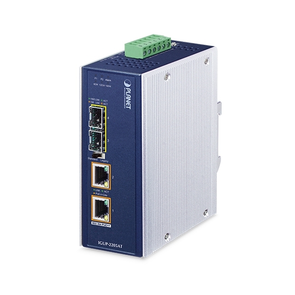 The PLNIGUP-2205AT is a high-quality industrial PoE media converter designed for fiber to copper gigabit extension and high power device feeding. Measuring 56 x 87.8 x 135 mm, it features an IP30 metal enclosure and a rugged -40 to 75 C operating range to ensure reliable performance in harsh environments.