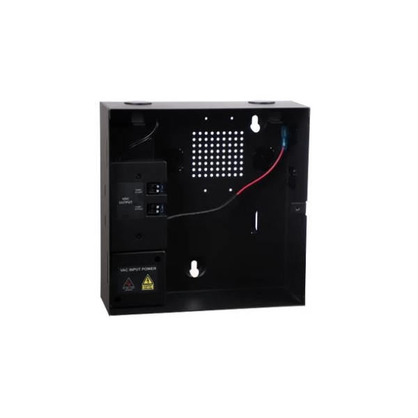 Ideal for wall-mounted installations requiring clean 12 V power and seamless UPS-style failover, it complies with CE FCC and RoHS and offers an IEC320-C14 inlet with PowerLock clamp, internal charger for up to 7 Ah SLA battery, multiple 1 inch conduit knockouts, and service LEDs—making it a robust choice for professional security panels, controllers, and networked peripherals in indoor environments.