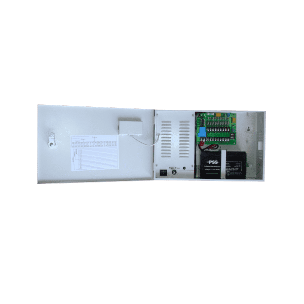 The PSSWB-DC12-4A is a high-quality wall mounted 12V DC power supply enclosure designed for professional CCTV access control alarms and networking peripherals. Measuring 92x235x362mm, it features a lockable steel cabinet with LED voltage display individually fused outputs and free air convection cooling to ensure stable multi-channel power distribution and reliable uptime during mains interruptions.