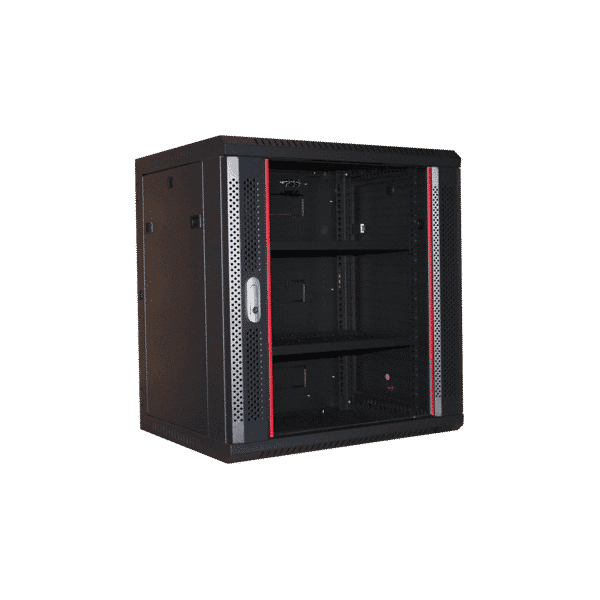 The PSSWM.6412 is a high-quality 12RU 19 inch wall mounted rack cabinet designed for secure housing of networking and AV equipment. Measuring 637H x 600W x 450D mm, it features a powder-coated steel enclosure with a lockable tempered glass front door and a welded internal frame to ensure reliable equipment protection and long-term durability.